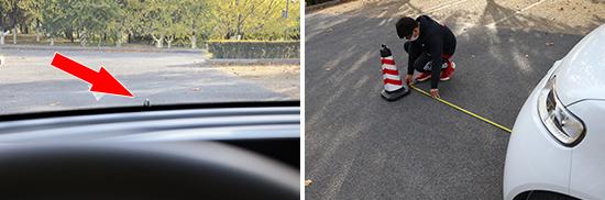 后方视野测试中,依旧将桩桶固定摆放,随后移动车辆直至可以观察到桩桶上沿为止,所测得的距离为635cm。