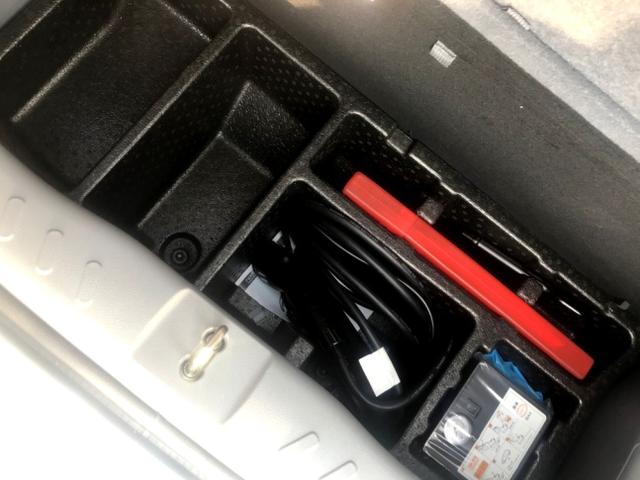 掀开条状的地板,就是下层了:第一眼你不会看到备胎,因为根本没有。下面是个泡沫深坑,一侧有电缆、小气泵、三脚架之类工具。另一边是个小空槽,可以放暖宝宝,也可以放私房钱——当然这没必要,"门槛"背面塑料件的大缝隙明显更适合,还隐蔽。