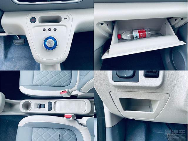 尽管欧拉白猫并没有中央扶手,但储物空间仍是它的强项。官方表示全车有多达24处多样化储物空间,虽然我没有一一数过,可从实际体验看,无论是扶手箱、门板还是旋钮挡上方等均有放置物件的地方,整体表现基本和普通的燃油车无异。