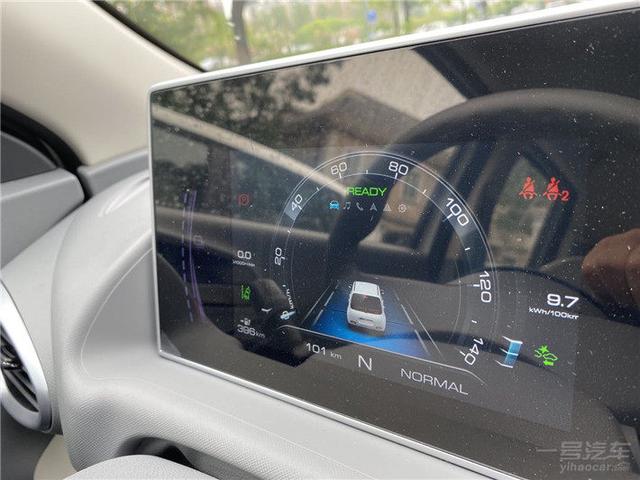 白猫有两个驾驶模式可选,分别是ECO和NORMAL,同时还有弱、标准和强三种能量回收等级。此外还有一个单踏板模式,你可以理解为是超强动能回收模式,此模式下行进中松开踏板,车辆就好像踩了刹车一般并会最终停止。至于ECO模式只能在70km/h下使用,因此高速只能使用NORMAL模式。