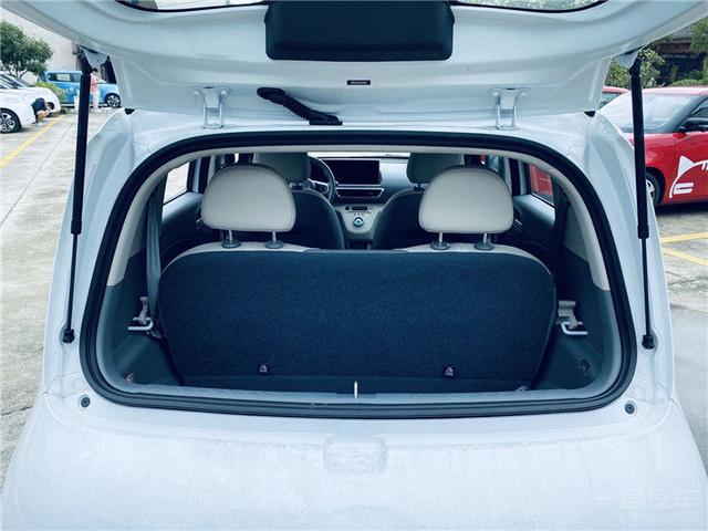 由于后排挤占了大部分空间,因此欧拉白猫的后备箱自然有所牺牲。在后排座椅放起的情况下,后备箱只能够放点书包之类的小物件。而将后排座椅放倒后,后备箱一下子就得到了扩展。不过较小的开口,注定了其后备箱只能放置一些相对小一点的东西。