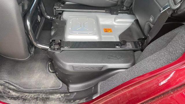 顶棚依旧是可以拆卸的设计,所以并没有材质包裹,后方依旧有粗壮的防滚架。这样的设计确实给人一种狂野不羁的快感。值得一说的是,牧马人4xe的后座打开之后,里面是电池放置的地方,Jeep表示这样的设计是为了在越野的颠簸或者磕碰中,保证电池的安全性。