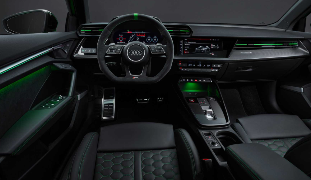 新车型最大的亮点就是五缸涡轮增压发动机,排量为2.5L,最大马力达到了394匹,美规版本更是达到了401匹,峰值扭矩则高达500牛米,很难想象这是一辆A3基本的车型所爆发的出动力。