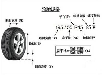 通常,我们都用第一个公式,因为其各个参数在轮胎上都能找到:例如195/65 R15对应的分别是轮胎宽度、扁平比和轮毂直径。通过原车胎计算出轮胎的直径,通过轮毂的J值找到最合适的轮胎宽度,然后根据你想要的轮毂直径,就能算出扁平比。