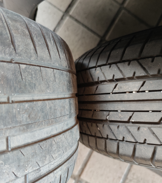 一般来说,改装大轮毂需要配上更宽的轮胎和更小的扁平比。我车轮胎的原装尺寸是215/60 R16,为了改装成18英寸的大轮毂,我需要把轮胎的宽度扩大到225mm,扁平比降低到45——225/45 R18。