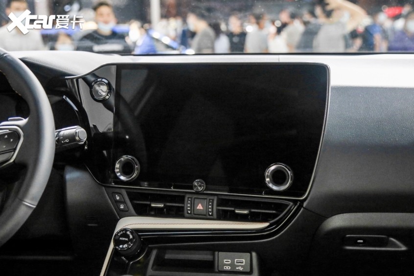 新车的中控区域采用了全触控设计,所有功能都集成在屏幕内,仅保留了音量和空调控制的旋钮,实拍车型采用了14英寸的液晶显示屏,这也是目前雷克萨斯家族中最大的中控屏幕。