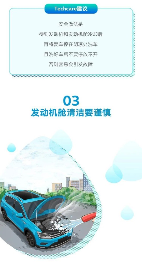 车辆在高速行驶时,轮胎带起来的泥灰和水垢会沉淀凝结在发动机舱内的各个部件的表面。建议采用压缩空气枪和毛刷,边吹边刷,这样可以快速清洁发动机舱。如果爱车车龄较长,发动机舱内也会出现轻微的油泥,这时如果盲目使用高压水枪冲洗,可能会造成其他零件受损。