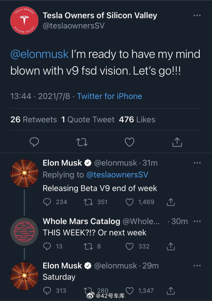 7月8日,马斯克宣布v9.0即将到来,就在“本周六”(7月10日)