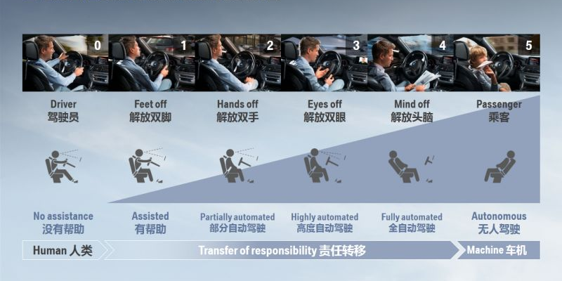 具备L5级自动驾驶能力的车辆,要求能够胜任在所有条件下的所有驾驶任务。不管是高速公路,还是城市道路,或者是乡村土路等各种路况下,不论车里是不是有人乘坐,只要设定好目的地,车子都会自动设定路线前往目的地,这个过程中不需要任何人类对驾驶任务进行干预。