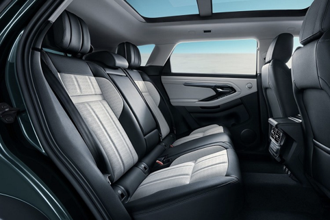 虽然车身尺寸更长,但在外型上其实差别不大,第一点就能分辨出Evoque。明显差异在于B柱之后,后车门明显要比一般版车型大一点点,在C柱位置有一个醒目的L标志。当地贩售的Evoque L可分为三种版本,其中一个版本的车型标准配备2 Tone双色涂装。