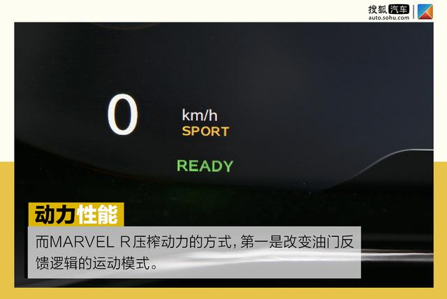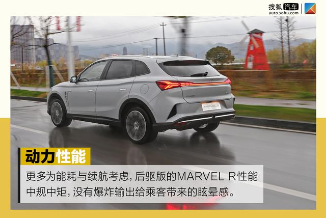 而即便两个电机马力全开,其上限也只有137kW,相比现阶段不少车型单电机就超过150kW的动力储备,此次试驾的MARVEL R后驱版车型,0-100km/h加速7.9s的官方数据并不出彩。其实际行驶中的动力反馈,也没有一些纯电动车让人产生眩晕感的爆发力,有的只是两种“压榨”动力的手段。
