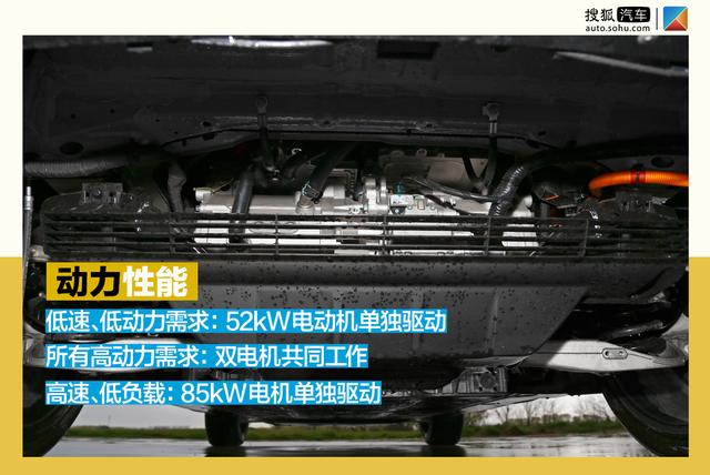 这“一大一小”的电机组合在一起,带来了“男女搭配、干活不累”的效果:52kW电机足以胜任中低车速、平稳输出的动力需求;急加速以及车速较高等高负载状态下,两个电机共同发力;高速巡航之时,85kW的单电机将接管提供动力的任务。