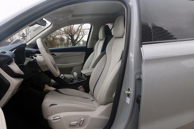 MARVEL R的车厢给我的第一感觉可以用两个词来形容,就是“简洁”和“豪华”。除了大屏幕外,它的实体按键非常少,此外连空调出风口都采用隐藏式设计,所以很简洁。不过环抱式的中控台采用了大量的皮质覆盖,手感非常细腻,配上精细的缝线和64色氛围灯,媲美豪华品牌。