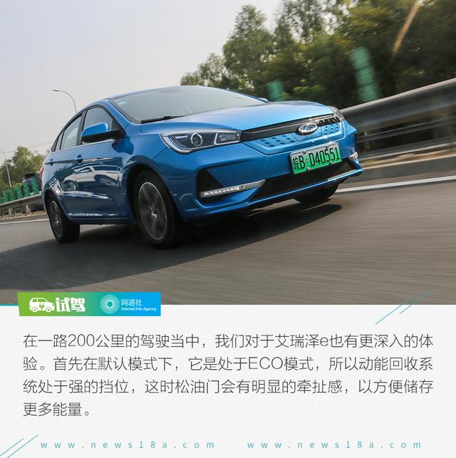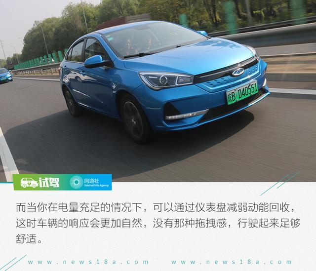在道路试驾中,艾瑞泽e给人一种轻松的感觉,它提速敏捷迅速,但又不窜,方向灵便自然,整体的驾驶感受很舒适。它动能回收有高中低三个级别,可以根据自己的驾驶习惯进行调节,对于一台不到15万的小车来说,使用上足够舒心。