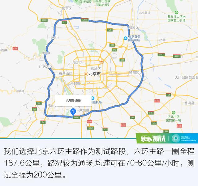 此次选择的高速测试路段为北京的六环,由于较高的限速使得我们的平均时速可以到达100km/h左右。我们将从六环北七家收费站出发,围绕六环一圈的里程正好是200公里左右,测试完毕后我们会通过掉电比例计算高速续航里程。