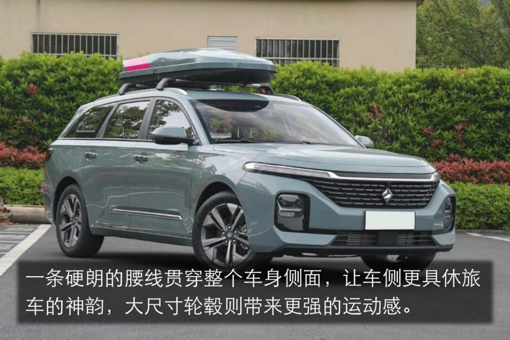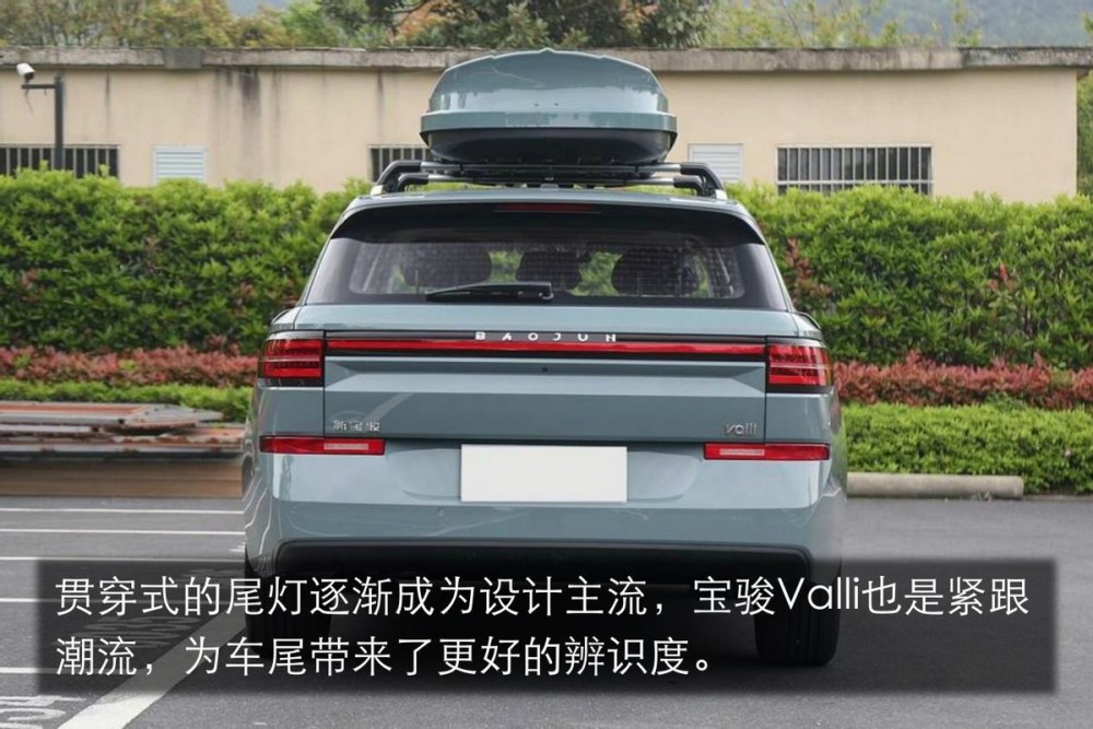 从外观造型来看,宝骏Valli十分标准的旅行车结构,视觉上就带来了足够的惊喜。如果是跟传统的三厢轿车或者SUV车型相比较的话,毫无疑问宝骏Valli开上街会更加独特一些。而且,由于该车原厂附赠了车顶行李厢,也就让它看起来更加独特。但实际上,车顶行李厢的搭载,不仅仅是视觉上有所不同,更重要的是它让宝骏Valli的实用性更加出色了不少。