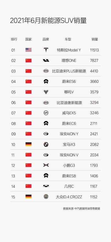 数据同样显示,在6月新能源SUV市场理想ONE排名第二,仅次于特斯拉 Model Y。