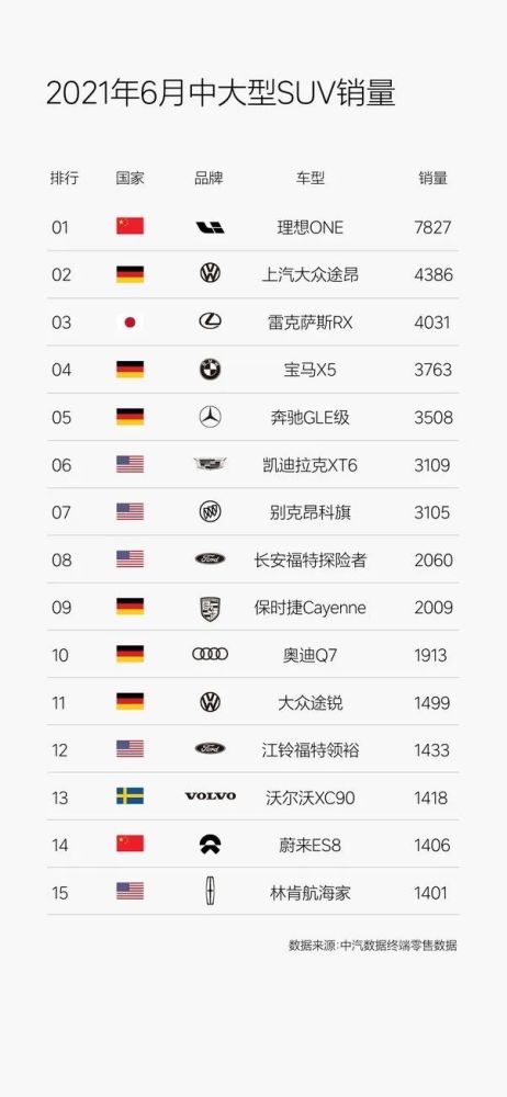 此外,根据中汽数据终端零售数据,6月,理想ONE在中大型SUV市场,超越一众合资和进口豪华车型,位居第一。