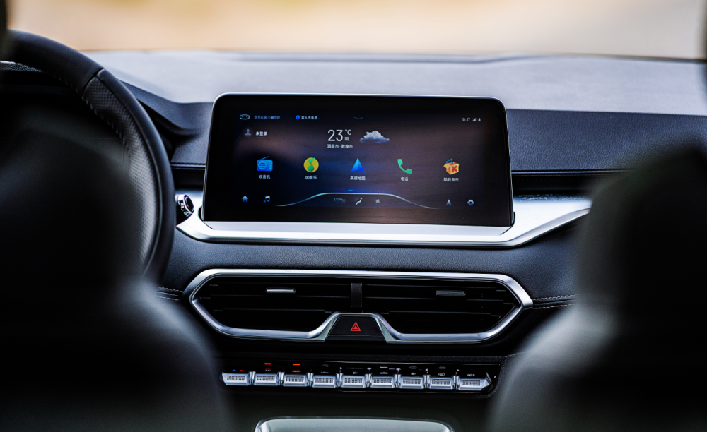 进入车内,相比于原先的嵌入式中控屏,如今炫界Pro采用的10.25英寸悬浮屏搭配10.25英寸液晶仪表更加有科技感,再配合设计灵感源自国风图案“回字纹”的空调出风口及琴键式物理按键,从而提升了车内的格调,精致感也随之被衬托出来。而超纤皮质双幅式多功能方向盘、电子游艇式档杆以及无线充电功能的加入,也让车内的档次感骤升。另外像中控台、门板等位置均采用了大面积软质材料包裹,配合镀铬按键以及钢琴漆面板的点缀,以顶配不到10万的价格来看,实属厚道。