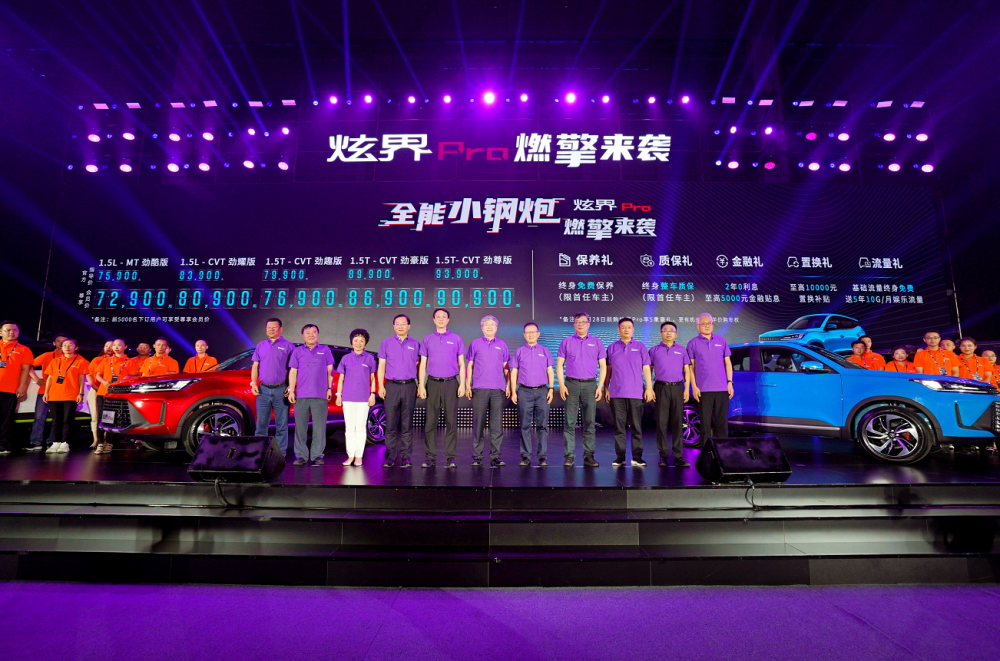 随着现场氛围的不断升温,凯翼炫界Pro在万众瞩目下燃擎亮相,奇瑞集团党委书记、董事长尹同跃,凯翼汽车有限公司总经理高雷等领导发言之后,炫界Pro正式上市。新车推出三种动力总成共计5款车型,并提供5款纯色车身及4款双色车身可选,官方指导价为7.59-9.39万元,而且前5000名购车的用户,还可以享受3000元的优惠,尊享会员价为7.29-9.09万元,满足年轻一代对独特个性和高性价比的追求。那么,在强手如林的紧凑型SUV市场,炫界Pro有哪些亮点,到底值不值得购买呢?我们接着往下看。