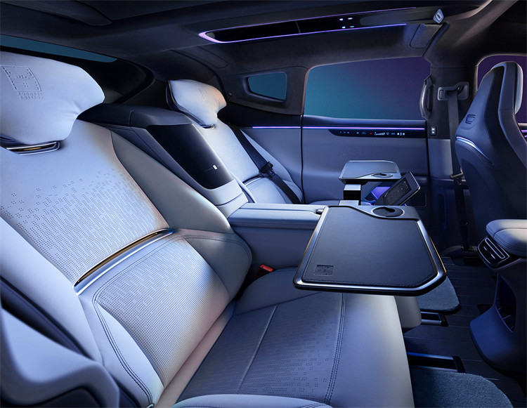 车辆内最先抓住眼球的无疑是三块大屏幕,新车的航舰级座舱布局使用创新的TouchPad多功能方向盘,搭配19.9英寸副驾大屏、16.9英寸中控屏、14.6英寸仪表屏等多屏联动交互设计,以及Meridian英国之宝定制的可进化音响系统、奇华顿定制香氛、超豪华级的半苯胺真皮、Ultrasuede车顶和五大预设沉浸式场景, 使用户可自定义沉浸式航舰座舱,可以说是将豪华进行到了极致。