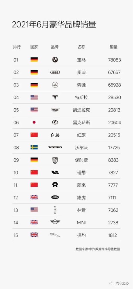 根据中汽数据终端零售数据显示,理想 ONE 2021 年 6 月上险量为7827 台,位居第十名,将蔚来、路虎、林肯等挤出豪华品牌前十的榜单之外,这也是理想首次进入豪华品牌前十榜单。
