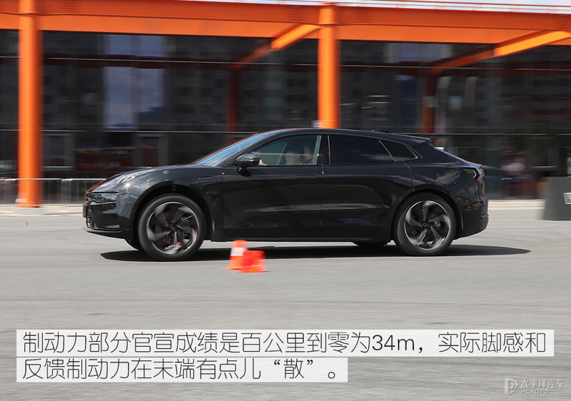 车辆的制动力在全力反馈中,确实很给力。要知道100度电池的极氪001可是要将近2.4吨。不过在连续的场地试驾中,它的热衰减让它制动力末端呈现略微有所松散,高强度连续制动依旧会受到自身重量的影响。好在这一些问题在日常中都不会成为用车的胜负手。在另外一个层面,新车基于博士ESP最新版本以及ibooster 2.0系统的双核制动,软硬件层面肯定很强,不过在制动踏板的初段个人认为阻尼以及制动力的呈现还可以进行优化。
