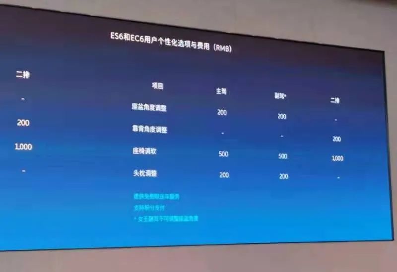 ES6 和 EC6 则一共提供了 8 个座椅个性方案,单项最低 200,合计收费 3000 元。