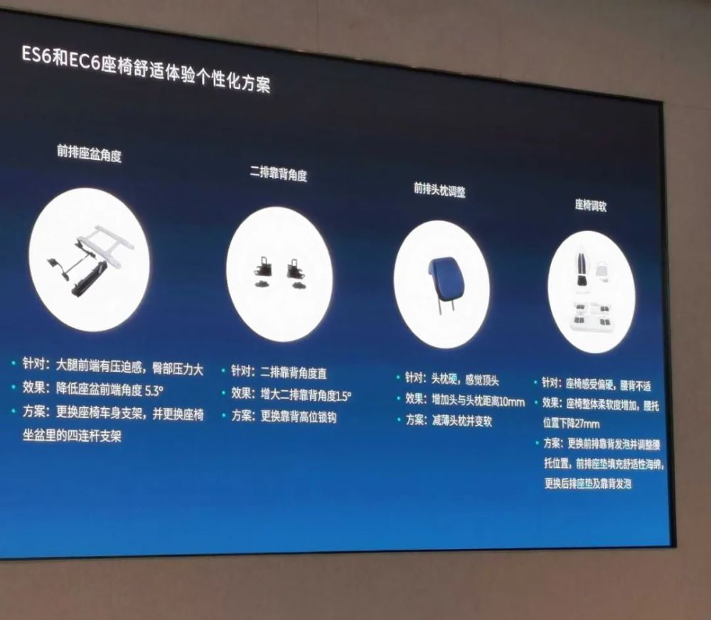 蔚来选择了通过 APP 做全量调查(补充句——可能是全球第一个对座椅舒适性做的用户全量调研),并在 7 月 18 日的合肥沟通会上披露相关信息。