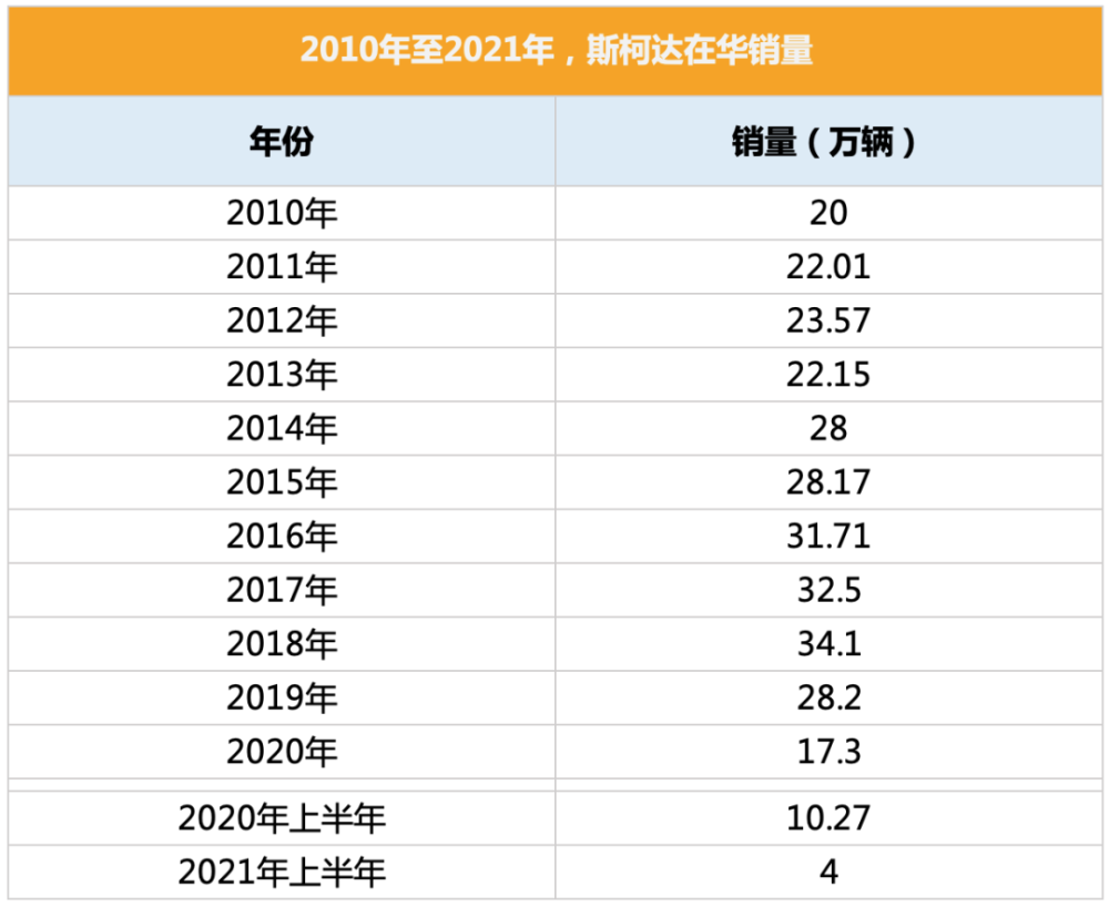 2020年全年在疫情影响下斯柯达全年销量大幅下滑到17.3万辆。进入到2021年,斯柯达在上半年只卖出4万多辆汽车,与去年同期疫情最严重的时段相比(2020上半年销量10.27万辆)销量也已腰斩,显然已经无法再拿疫情当借口了。