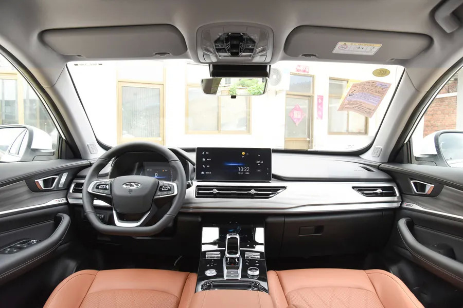 内饰方面相比老款车型,新款瑞虎8其整体内饰质感上都能看得到,当然最吸引人的还是中控台上的12.3英寸触控大屏以及7英寸的全液晶仪表。其中,12.3英寸触控支持着雄狮智云3.0版本,该版本拥有着AI人脸识别、Al云管家、AI仪表及8英寸空调。除此之外,新款瑞虎8 在配置上还有胎压监测、手机无线电充电、真皮座椅、前排座椅加热、双区自动空调、ACC自适应巡航的等等。