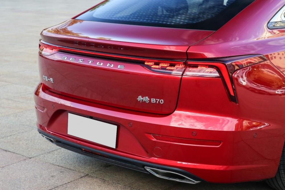 侧身设计上C柱上的掀背倾向较为明显,而细节上来看,奔腾B70有隐藏式车门把手,这对优化风阻是有一定好处的。总体呈现出来的视觉效果还算不错,看起来比较年轻。车尾设计上,奔腾B70在溜背身材冲压出了一个小鸭尾,尾灯的造型与前脸相呼应,配合贯穿光带与BESTUNE英文标识,比较有辨识度。