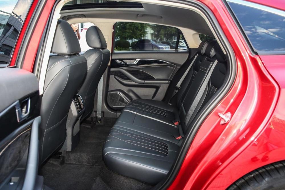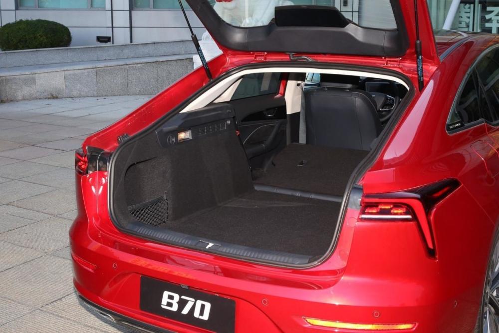车身尺寸上,奔腾B70坐拥4810/1840/1455mm的车身尺寸,是规划在B级车标准里的,掀背车身下的宽大车身给了它较为良好的空间表现,首先,2800mm的轴距为静态测试中的体验者(身高为176cm)提供了2拳2指的后排腿部空间,头部余量则在半拳左右,稍带掏空的车顶能避免长时间乘坐中的压抑感产生。