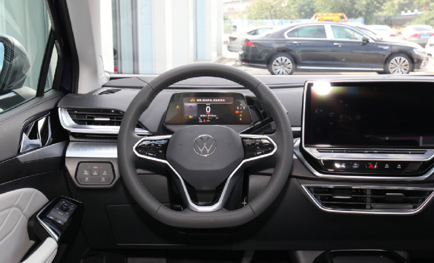 ID.6 X的车内搭载了一块悬浮式的大屏幕,尺寸为12英寸。不仅使用起来很流畅,还支持语音或手势控制。