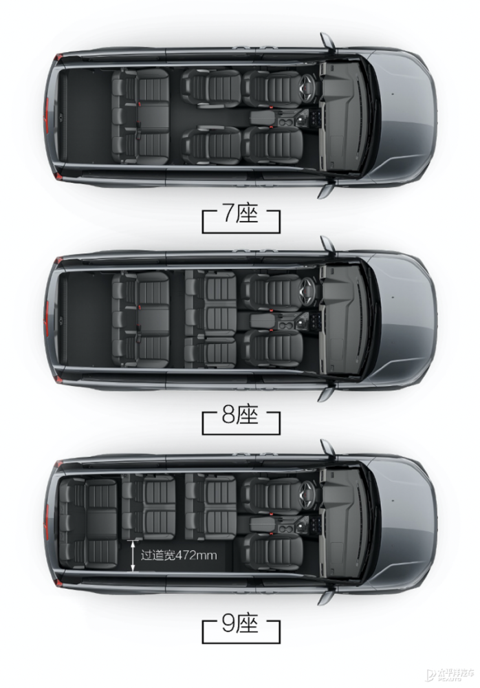新车座椅布局灵活,打造了7、8、9座多种座椅组合,其后排座椅可翻转折平,且提供2座封窗车选择,适用不同的用车场景。7座车型在满足大部分载人需求的同时,留有充裕的行李箱空间,9座车型则将载人发挥到了极致,同时还搭配了472mm超宽通道,既方便上下车,也能成为大件行李的存放地。新车将于8月上市,关于新车的更多信息我们也将持续关注报道。