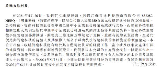 实际上,早在 6 月小鹏汽车向港交所提交的招股书就显示:其正通过智途科技的破产程序收购其100%的股权。这笔收购金额为2.5 亿元。