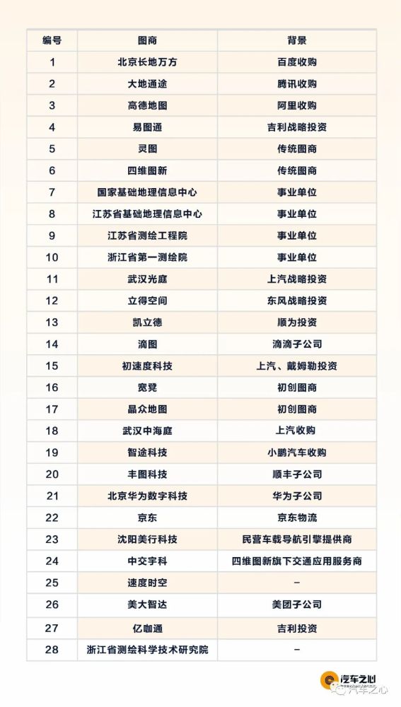 汽车之心统计,截至目前,国内共有28 家企业或机构获得了甲级测绘资质。