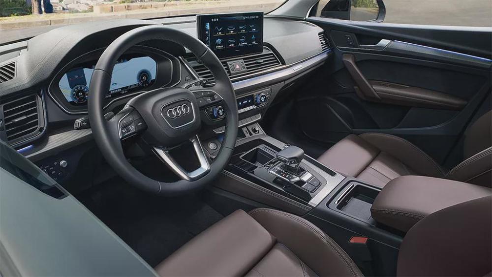 内饰的变化不算太大,12.3英寸的全液晶仪表和10.1英寸的悬浮式中控屏是全系标配,悬浮式中控屏造型有细微变化,内部集成了MMI信息娱乐车机系统,游艇式的电子换挡机构也为这套数字化座舱增加了不少豪华感。此外,新款奥迪Q5L还搭载了L2级ADAS驾驶辅助系统,并配备了HUD抬头显示功能。