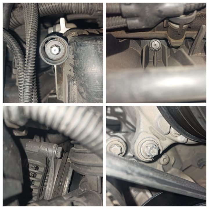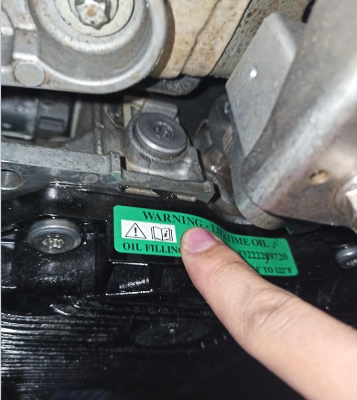 如果事故很大,发动机肯定会动的,所以靓仔先检查发动机。但是发动机气门室盖、进气管、发电机、空调泵的固定螺丝均无拆卸痕迹,也没有后喷漆,新旧成色没有异样,说明事故并没有伤到发动机主体。
