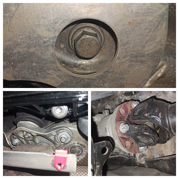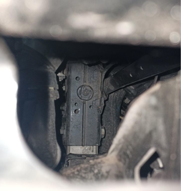 直奔主题检查发动机变速箱底部,元宝梁固定螺丝拆卸,变速箱机脚胶拆卸,分动箱和传动轴螺丝拆卸,种种迹象都指向一个事实,动力总成有吊装下来。