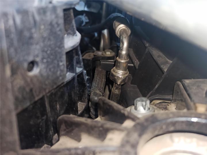 同样是防火墙旁边的燃油管,有明显的变形。