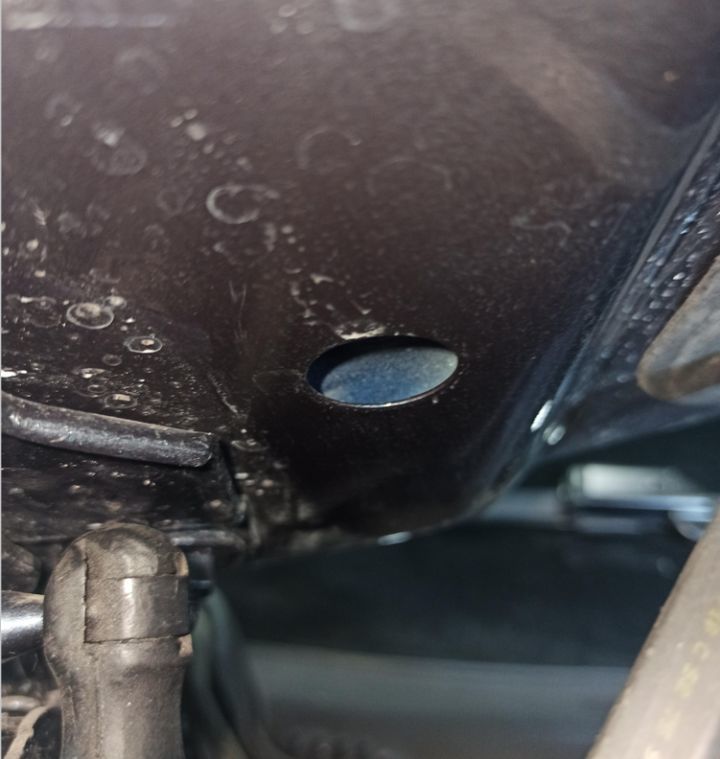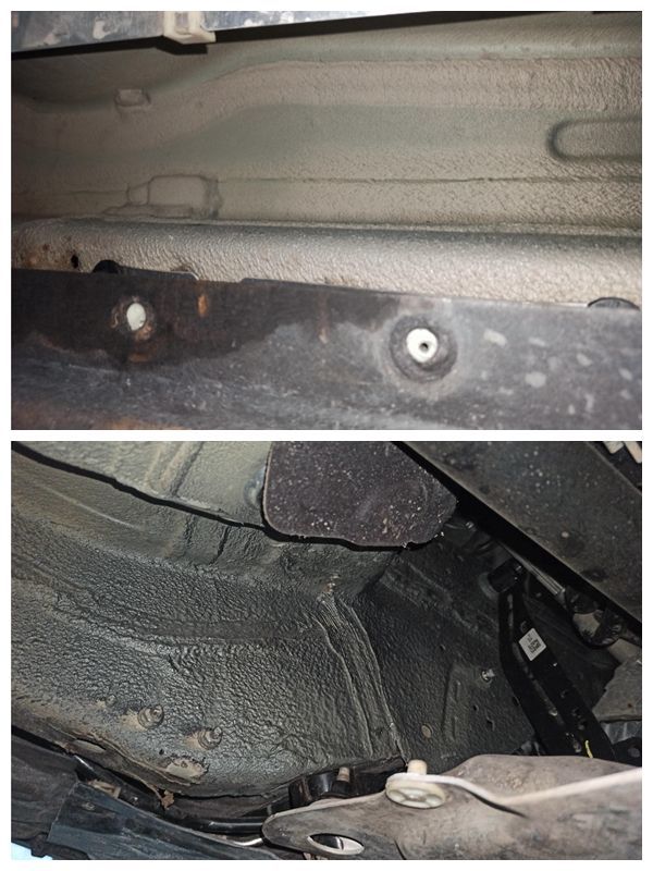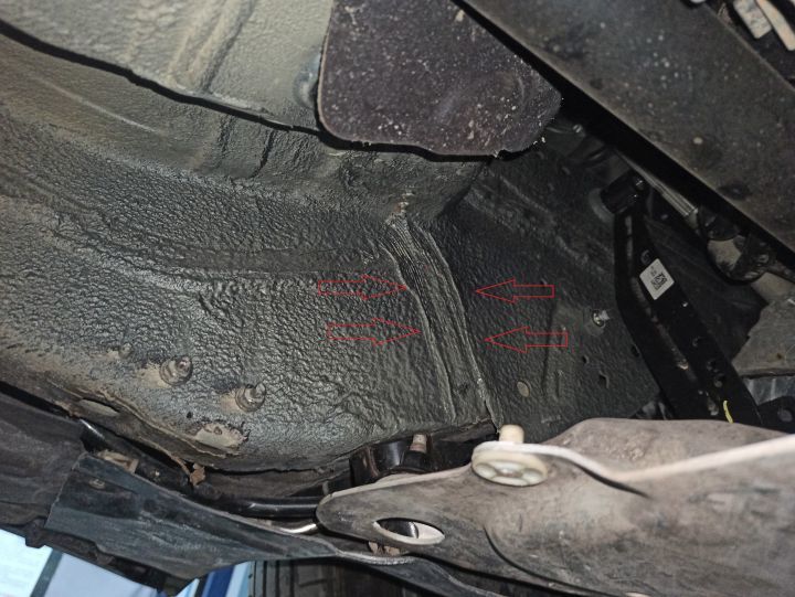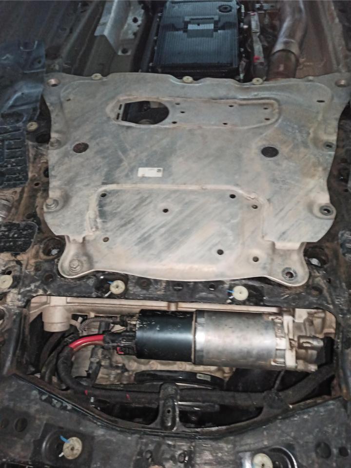 接下来就是重中之重的底盘检测了,之前的疑问在这里都可以找到答案。所以说,买二手车能看底盘的话就尽量看一下,防备一些隐藏的问题。和卖家好说歹说,终于同意靓仔我拆下护板,要不然啥都看不到。