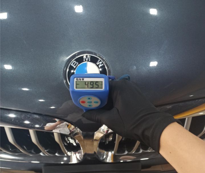 接下来借助专业设备看看准确的漆面厚度,验证一下有没有外观上的修复。首先发动机舱盖数据偏高,原车标准应该在100μm-120μm区间,而现在达到了495μm,肯定是有喷漆修复。