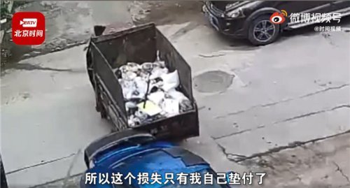 据@时间视频报道,近日,山东济南。环卫工江大叔运送垃圾时因操作失误,不慎撞到路边停放的保时捷跑车。