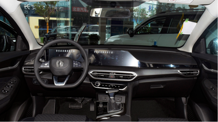 内饰上整体科技感提升,风格上可以看出是向长安PLUS家族风格看齐,微微向主驾驶倾斜的T型中控台,使得驾驶员操作变得方便许多,中控台上半部分运用软性材料包裹,看起来更加高级。