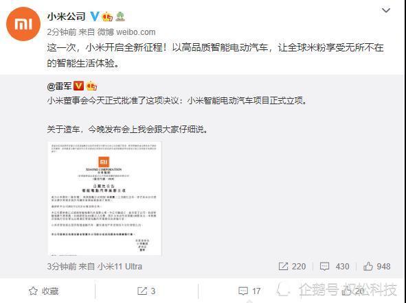 以上就是关于小米电动车的部分消息,相信看到这里有不少小伙伴都希望知道小米电动车的售价,根据权松科技得到的消息来看,小米电动车的首发售价将会是129999元到149999元,这样的价格也是目前中国电动车市场的主要销售区间,不知道这样的价格能不能获得用户的认可。同时根据传闻小米电动车最快会在2022年正式发布,预计2022年底交付,最终的时间还要等待小米发布会来宣布了。目前关于小米电动车的消息只有这么多,如果你想获取更多的科技资讯欢迎关注权松科技,我们将在这里等着你的到来。