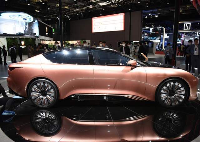 外观方面,新车定位是D级电动车,外观设计像是跑车,整车车长为5320mm,轴距为3170mm,相当于奔驰S级了。前脸取消了格栅,灯组为矩阵式设计,灯带也贯穿了整个车头,特别是引擎盖用了黑色涂装,整车看起来就很炫酷。