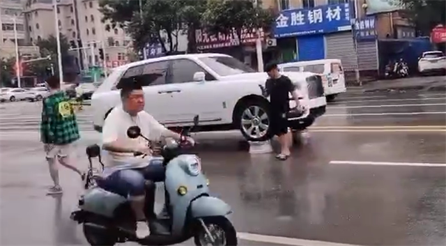 这样一台劳斯莱斯出现在街头,车子没有被水淹,车主也没有来及时取车。