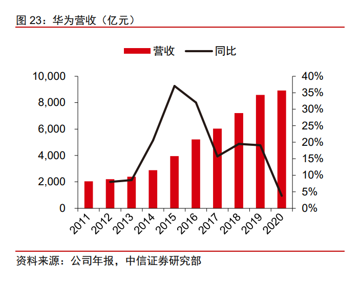 半导体厂商&芯片代工厂对华为供货影响较大,消费者业务将继续承压。自 2019 年 5 月 15 日美国将华为等 70 家子公司列入实体清单以来,美国半导体厂商及芯片代工厂对华为芯片供货影响较大,华为消费者业务将继续承压,手机出货量及市占率持续降低。