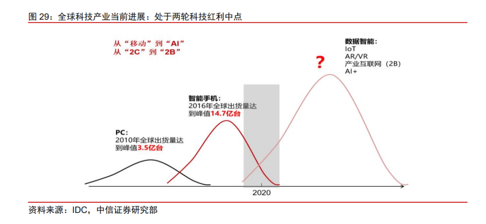 智能汽车有望成为 AIoT 领域中率先落地的应用场景。当前正处于两 轮科技红利之间,5AIoT将成继移动互联网后,下一轮科技红利最大的机遇。智能手机和移动互联网连接数趋于饱和,但伴随 5G、wifi、AI 等技术发展、成本下降以及场景逐渐成熟,物联网的机遇才刚刚展露。